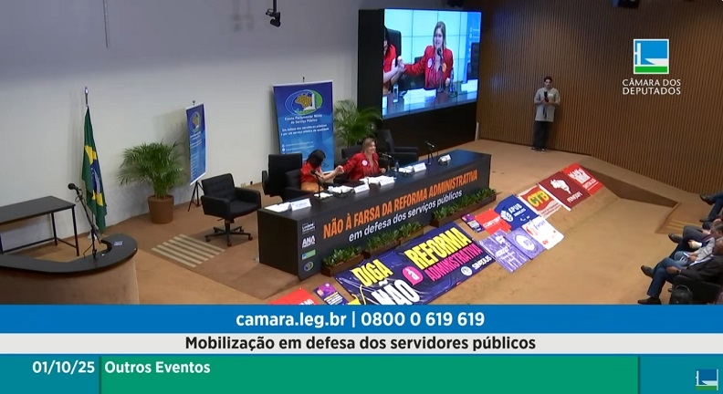 Nesta quarta-feira (1º), o Auditório Nereu Ramos, na Câmara dos Deputados, em Brasília, foi palco de mais uma importante mobilização contra a Reforma Administrativa. Convocado pelas deputadas professora Luciene Cavalcante (Psol-SP) e Ana Pimentel (PT-MG), ambas também servidoras públicas, e apoiado pela Frente Parlamentar Mista em Defesa do Serviço Público, o ato reuniu parlamentares, lideranças sindicais e representantes da sociedade civil em um movimento de resistência ao projeto, considerado uma ameaça direta ao funcionalismo público no país.