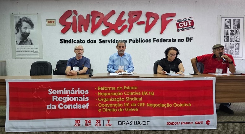 Começou nesta sexta-feira, 10, mais um ciclo de debates promovido pelos Seminários Regionais da Condsef (Confederação dos Trabalhadores no Serviço Público Federal). A série de encontros será realizada em Brasília, com próximas datas confirmadas para os dias 24 e 31 de outubro e 7 de novembro, sediados pelo Sindsep-DF, entidade filiada à Condsef/Fenadsef no Distrito Federal.